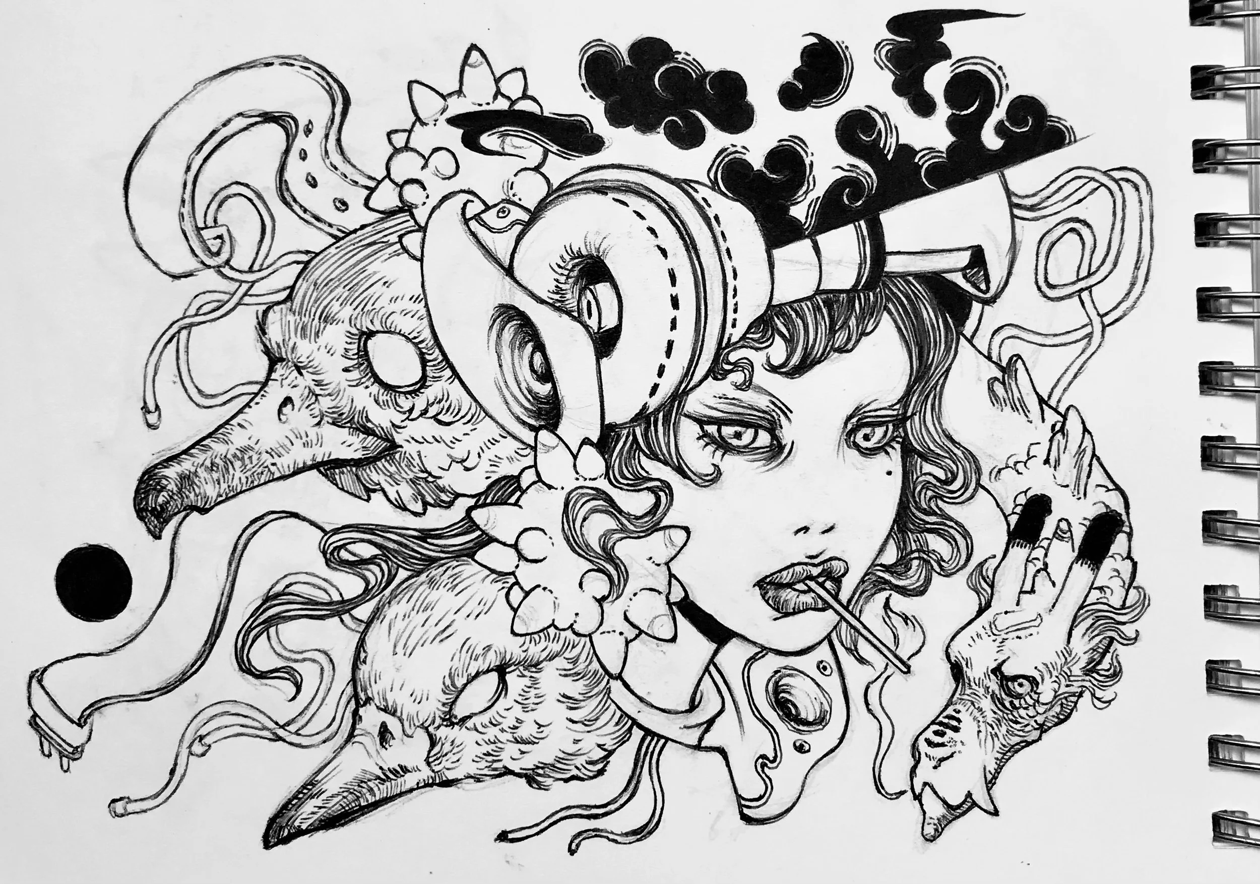 Ghostface prefers to let the art do the talking. She enjoys beautiful women, creepy creatures, and sensual lines of almost any kind. Over the years, she’s shifted from character creation to illustration with dramatic colors and odd compositions. She also has an interest in hand lettering fonts. Browse Aly’s artwork below: